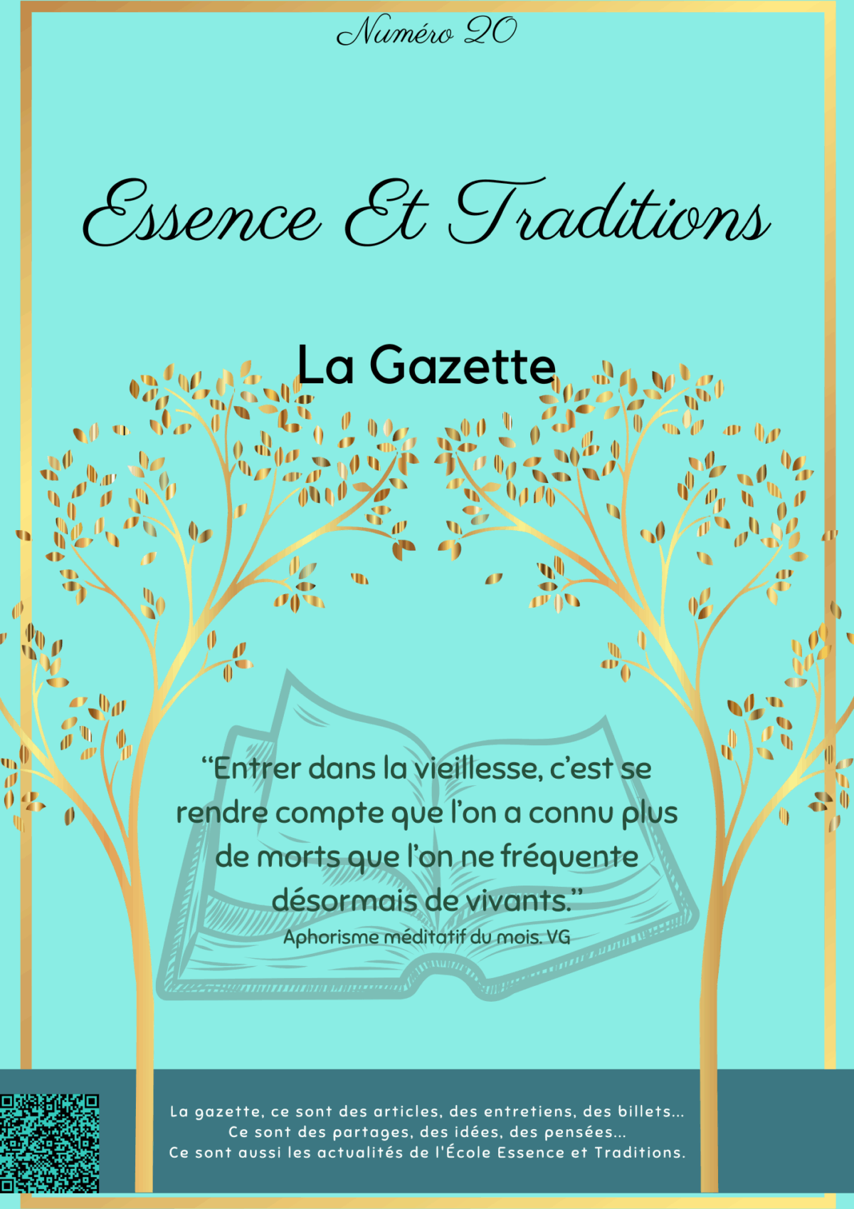 Cette publication est destinée à tous ceux qui s’intéressent de près ou de loin à tout ce qui a trait aux traditions. D’ici ou d’ailleurs, récentes ou plus anciennes, usitées ou oubliées, les traditions constituent un socle pour chaque civilisation. C’est évidemment notre sensibilité personnelle qui détermine le contenu de cette Gazette. Vous trouverez dans cette publication régulière, des réflexions, de la métaphysique, de la philosophie, des invitations à la lecture, des critiques de films et séries, pas toujours des plus récents, parfois un article consacré à une plante, un point d’acupuncture, un personnage…
